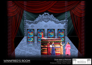 I designed the costumes and a touring set for the production of "Once Upon a Mattress" by Ephesus Teatron. I used a lot of bold colors and color blocked many of the actors' costumes.